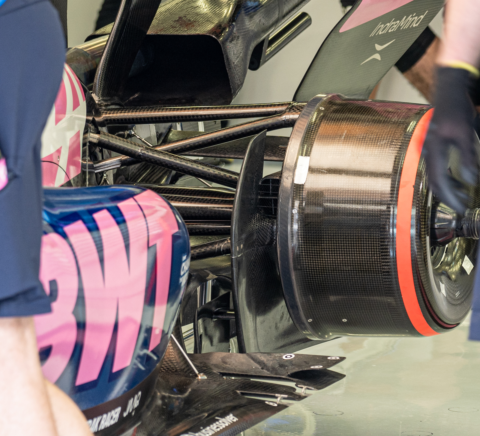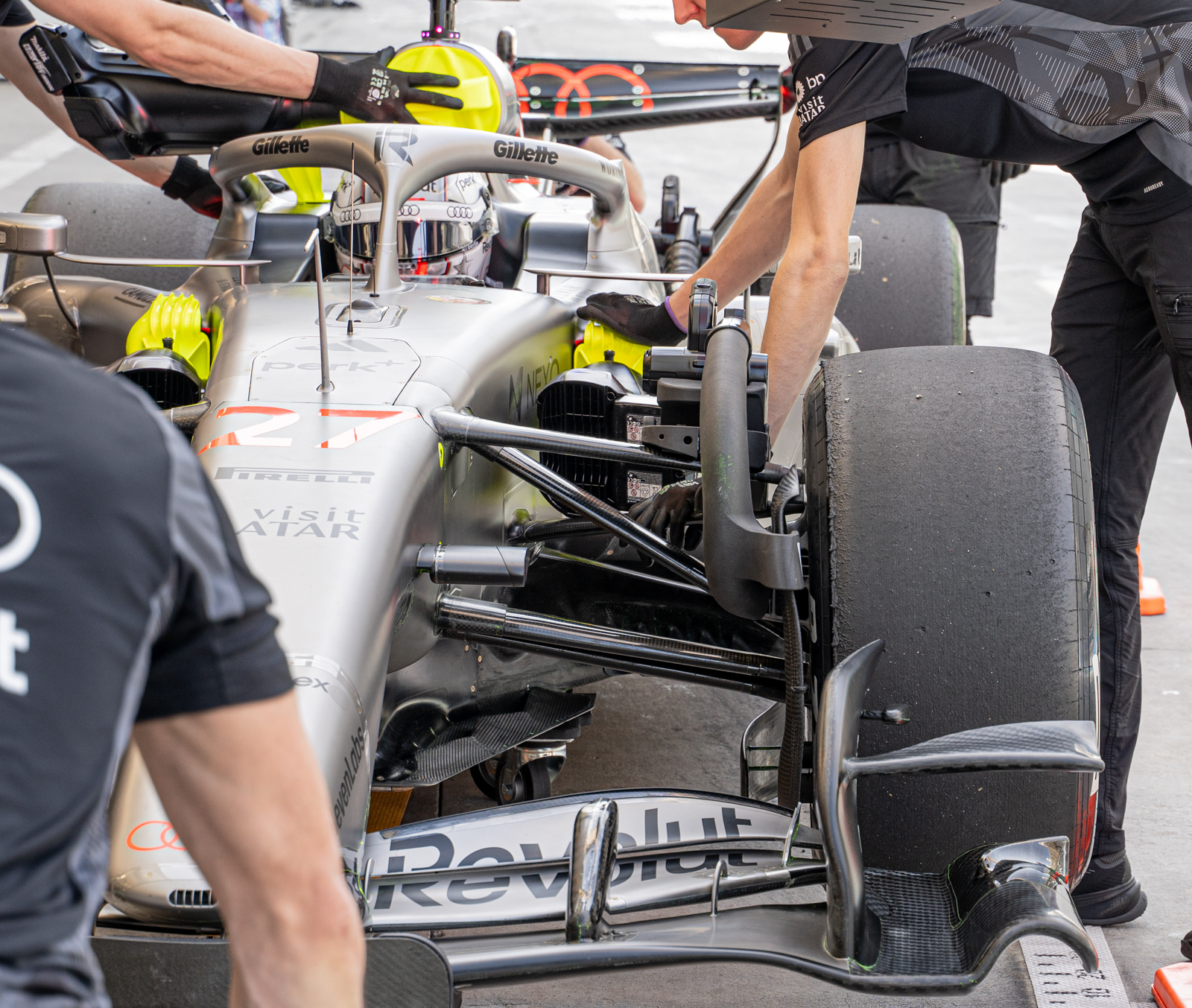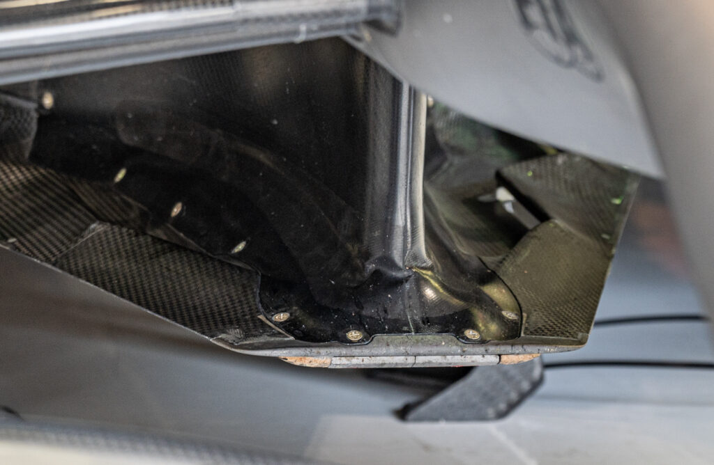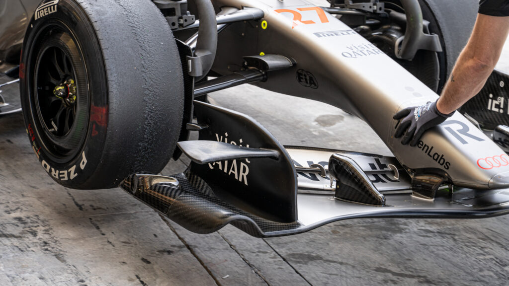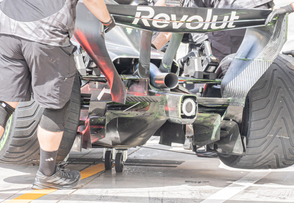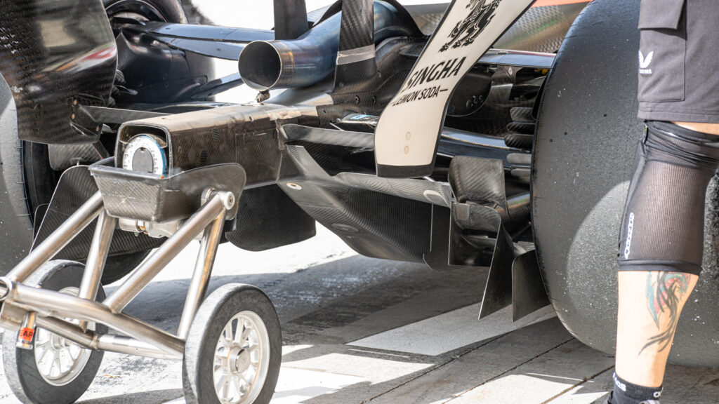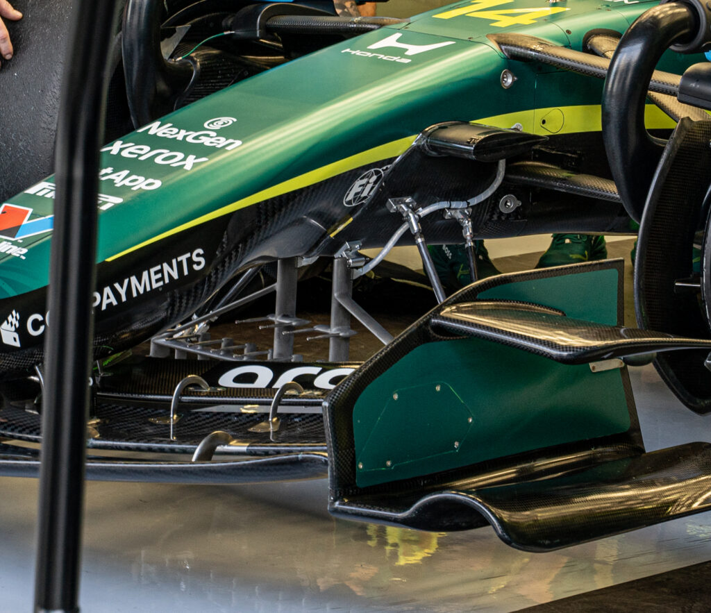 He notes that the front wing remains the primary tool for setting the car’s aerodynamic behaviour. Teams are currently split on their approach: whether to load the wing more toward the center or the outboard side to manage the wake of the front wheels. With the rules written so as to force in-washing of the wake, the goal of every team is to try and minimise the damage this cause to flow further down the car. Like in the pre-ground effect era, the goal is to retain as much high energy airflow towards the rear of the car as possible, helping to drive the diffuser.