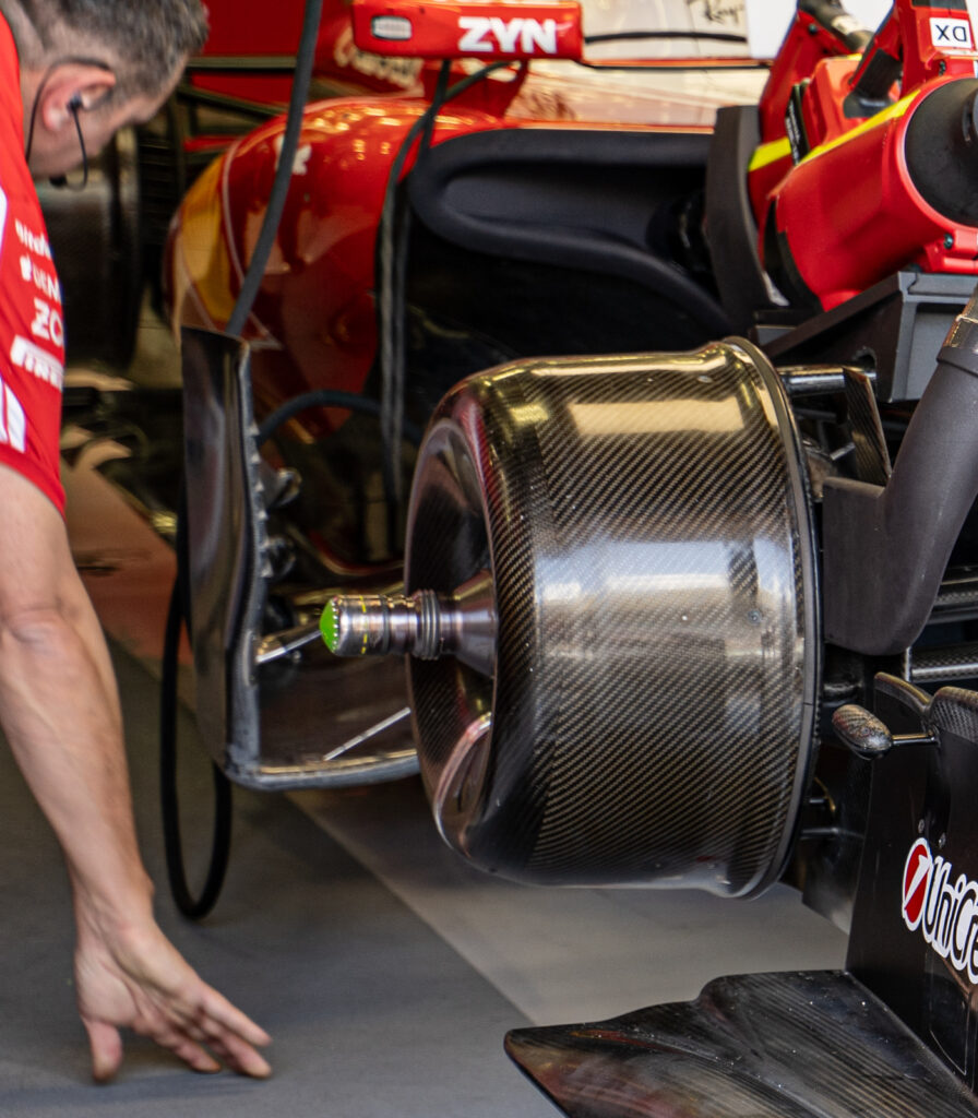 The real divergence on the grid is seen in radiator packaging and the shaping of the sidepod inlets. However, the true complexity, says Paganelli, lies in the brake ducts. With high energy recovery from the electrical system, teams must precisely simulate energy management to correctly size the ducts within the tight geometric constraints of the wheel rims, as the design of the external ducts is tightly controlled.